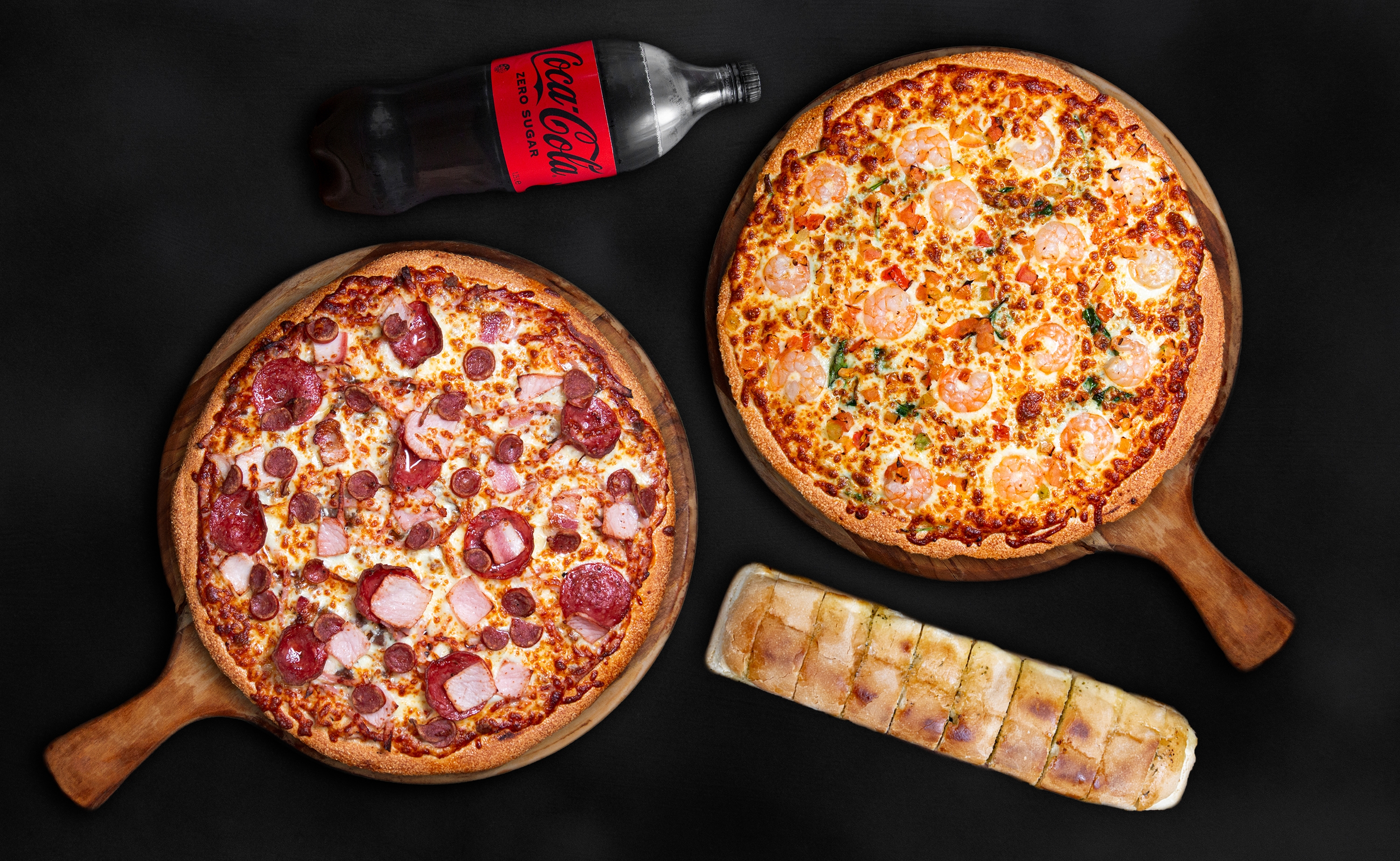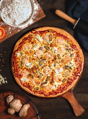 Tomato Base, Mozzarella Cheese, Prawns, Seafood Mix and Lemon Pepper.