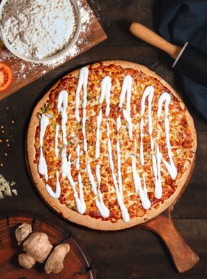 Tomato Base, Chicken, Capsicum, Onion, Tomato, Mozzarella Cheese and Aioli Swirl.