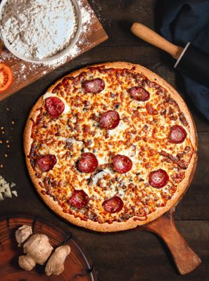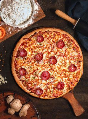 Sweet Chilli Base, Beef, Pepperoni, Capsicum, Jalapenos, Onion, Tomato and Mozzarella Cheese.
