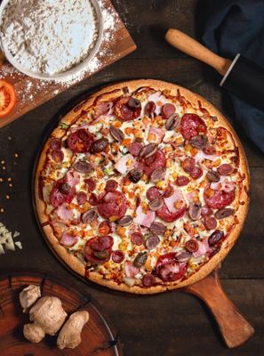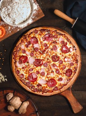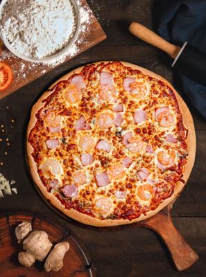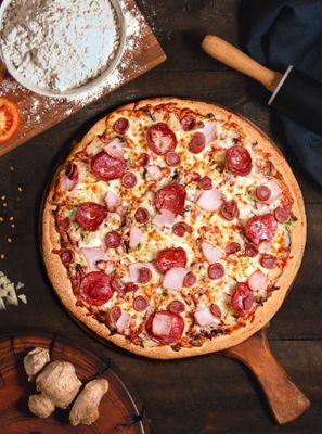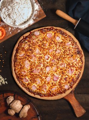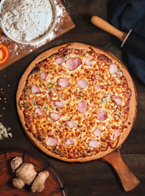 Tomato Base, Ham, Pepperoni, Capsicum, Pineapple, Mozzarella Cheese and Garlic.