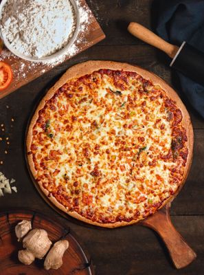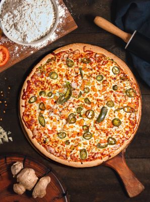 Sweet Chilli Base, Chicken, Capsicum, Jalapenos, Onion, Tomato and Mozzarella Cheese.