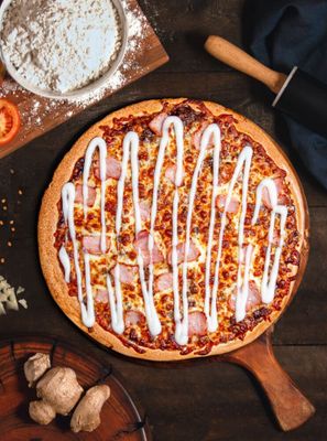 BBQ Base, Bacon, Beef, Mozzarella Cheese and Mayonnaise Swirl.